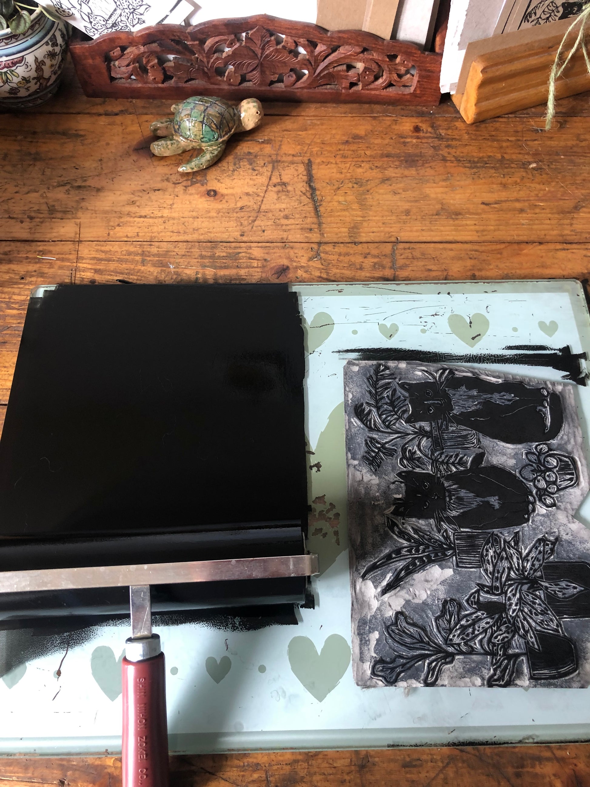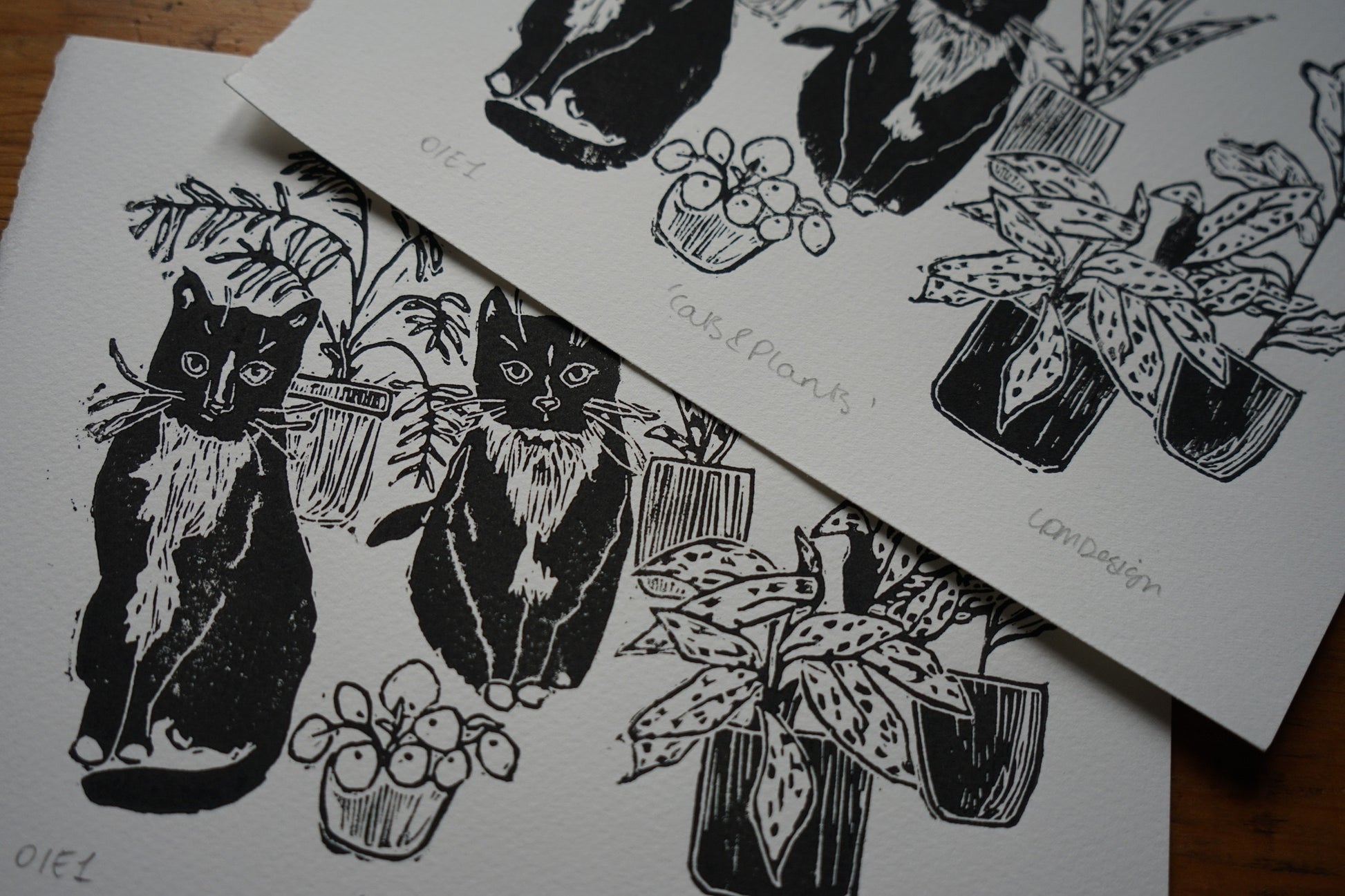 Each print is carved and printed by hand, making them one-of-a-kind individual pieces of art that have their own charm and character.