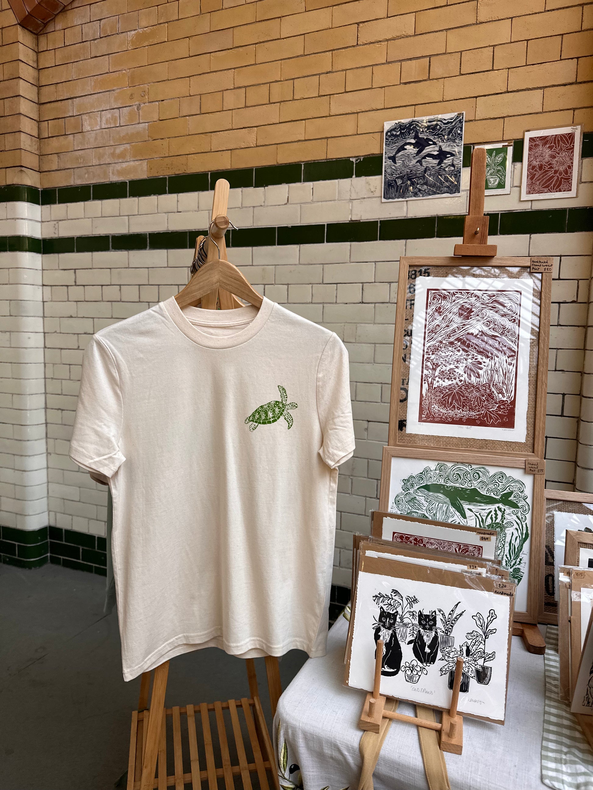 Design from original green turtle & coral linocut print and David Attenborough text (made with ink drawing). Featuring critically endangered species Green turtle.